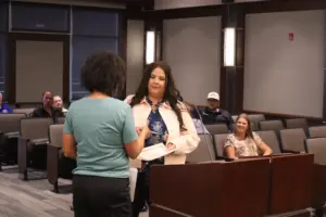 Next to the podium was Tina Grange with June’s Super Service Award, which was presented to Rita Baker of Cowboy Kitchen. “Rita is very friendly, very efficient and represents our area very well,” reads Baker’s nomination. “She always does an amazing job, and I think she would be a great candidate for this award.”