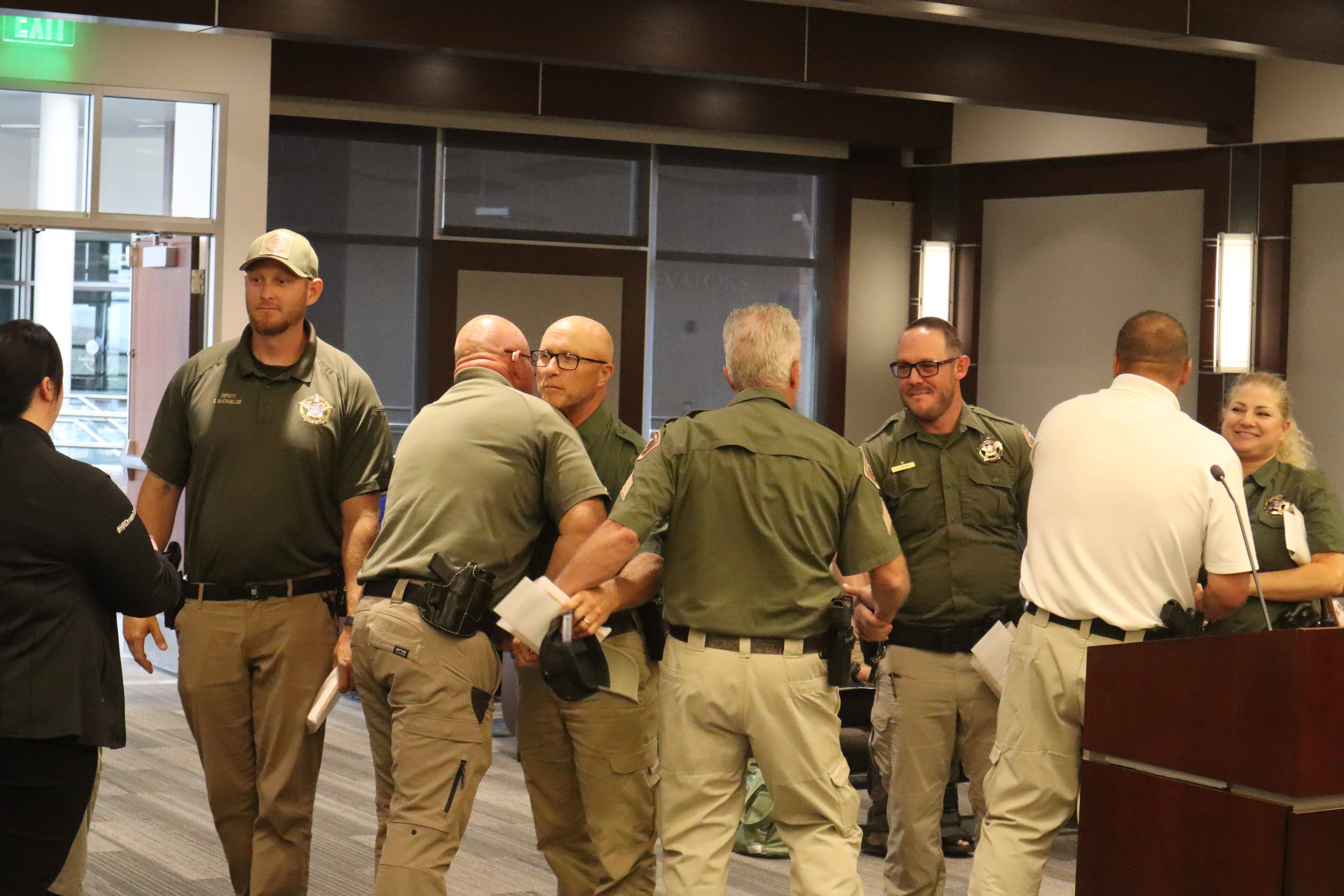 Nominated by Chief Deputy Cletus Steele and Sgt. Rick Adams, the duo praised the four officers for their work as school resource officers and as civil processors. “Their dedication and positive attitude is second to none at the Sheriff’s Office,” said Adams. “It’s hard to give it to just one, so you have to do all four. They’re all that good. This award is way overdue and well deserved by all of them.”