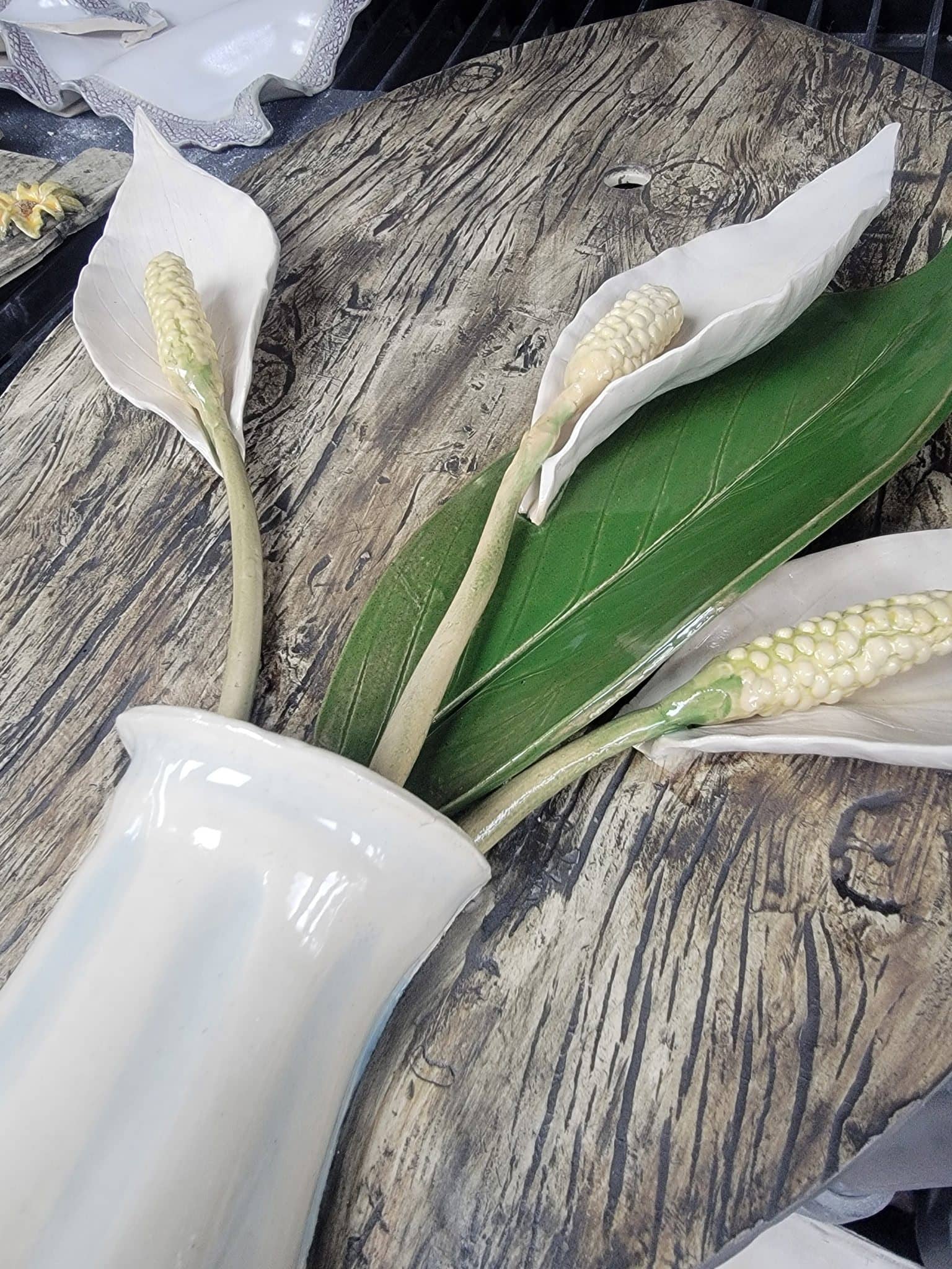 Ideas come to her as organically as the textured objects she fashions in clay. “Spontaneity is a key element in my creative process,” she says. “Many of my ideas that become a finished piece are started by a plant or weed I pick, a fence, pinecone, fabric pattern, shoe tread, cooking utensil, etc. The ideas come fast and, more often than not, complete.”