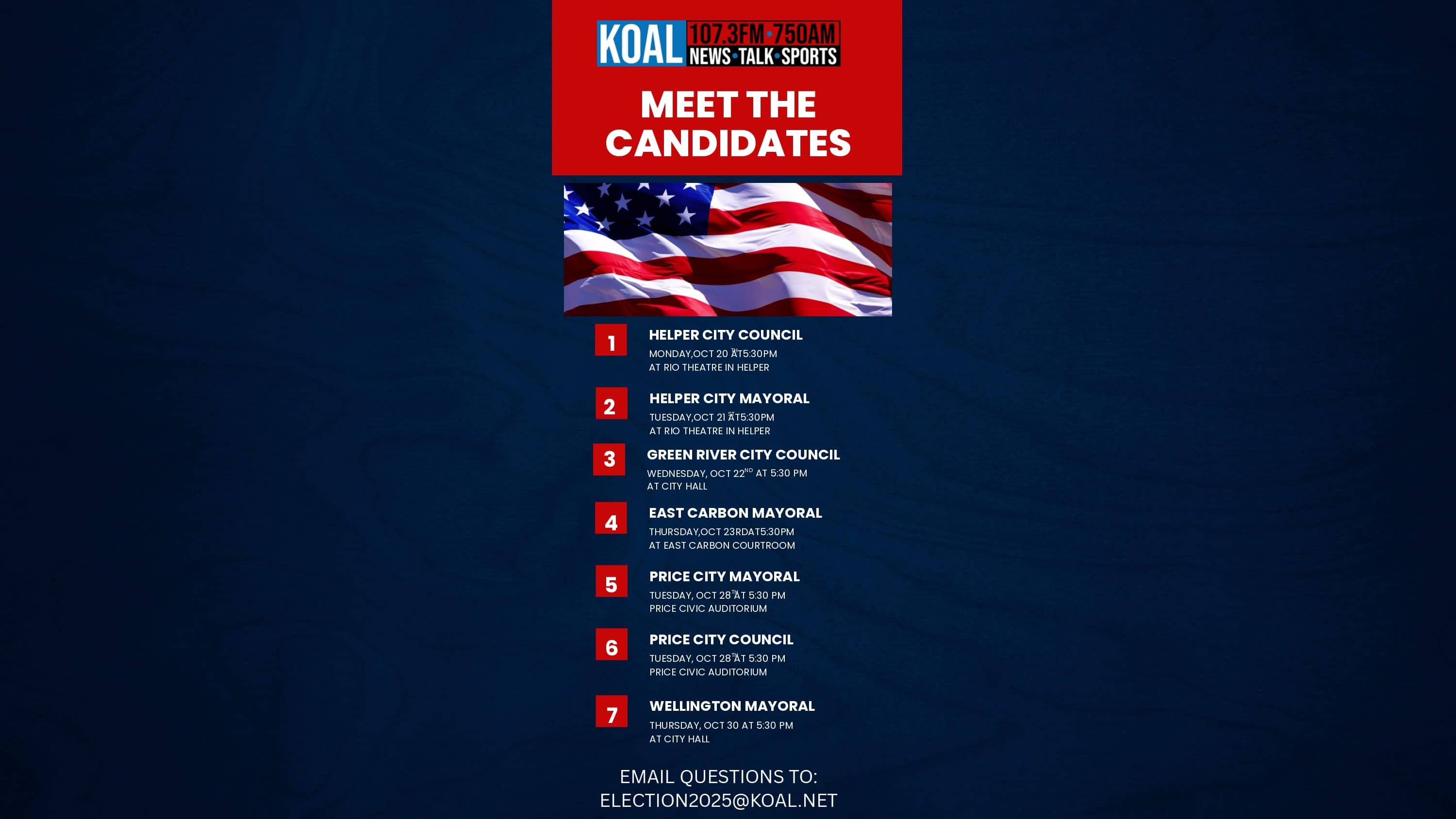 Questions for the candidates are still being accepted for all of these events. If you have a question for any of these races, you can email them to election2025@koal.net.