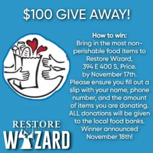 Donations can be dropped off at the Restore Wizard Offices at 394 East 400 South in Price.