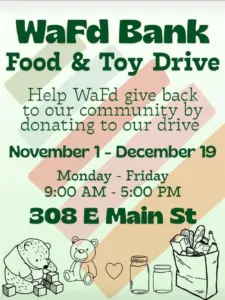 WaFd Bank is also giving citizens the chance to donate to a greater cause through its Toy/Food Drive, which runs from Nov. 1 through Dec. 19.