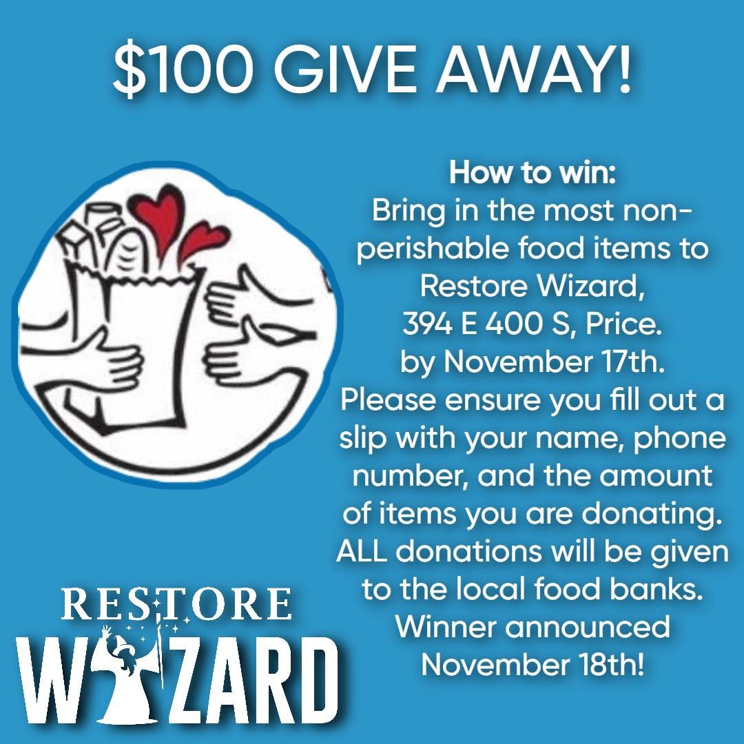 Local disaster restoration company Restore Wizard is also seeking to give back to the community. Taking a different approach, the company is hosting a competition, where the individual (or business) who donates the most nonperishable food will win $100.