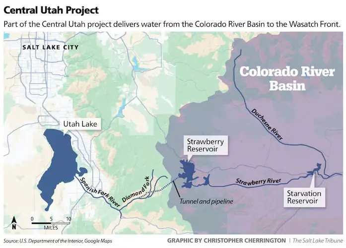 That web of dams and tunnels is called the Central Utah Project, the Bureau of Reclamation’s largest and most complex water project in Utah, according to the agency. That project is “potentially vulnerable to cuts,” though, because its water rights are newer, said Michael Drake, deputy state engineer with the Utah Division of Water Rights.