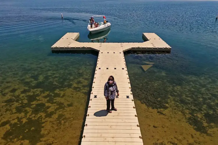 (Rick Bowmer | AP) Delanna Mart stands on a dock at a lake on Ute Indian Tribe of the Uintah and Ouray Reservation, Monday, July 25, 2022, in Fort Duchesne. The divvying up between Colorado River Basin states never took into account Indigenous Peoples or many others, and from the start the calculation of who should get what amount of that water may never have been balanced.