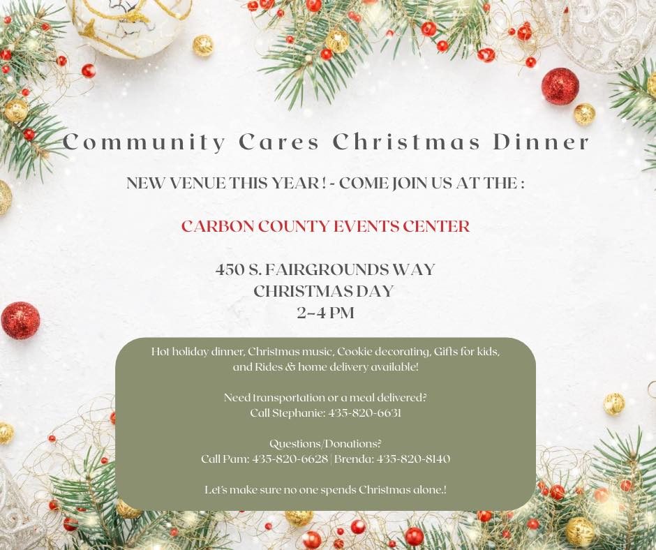The Community Cares Christmas Dinner takes place on Thursday, Dec. 25 from 2 p.m. to 4 p.m. at the Carbon County Events Center.