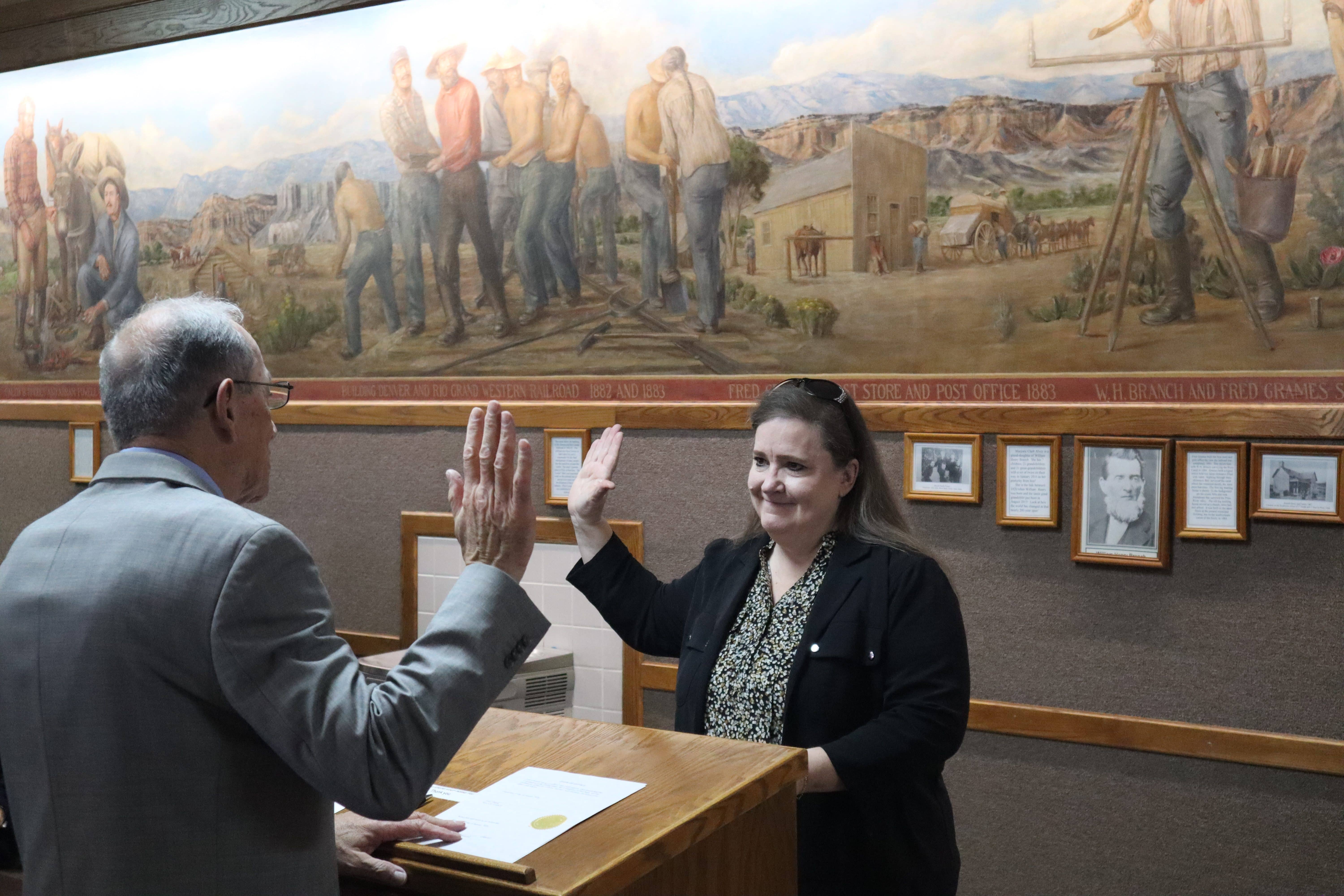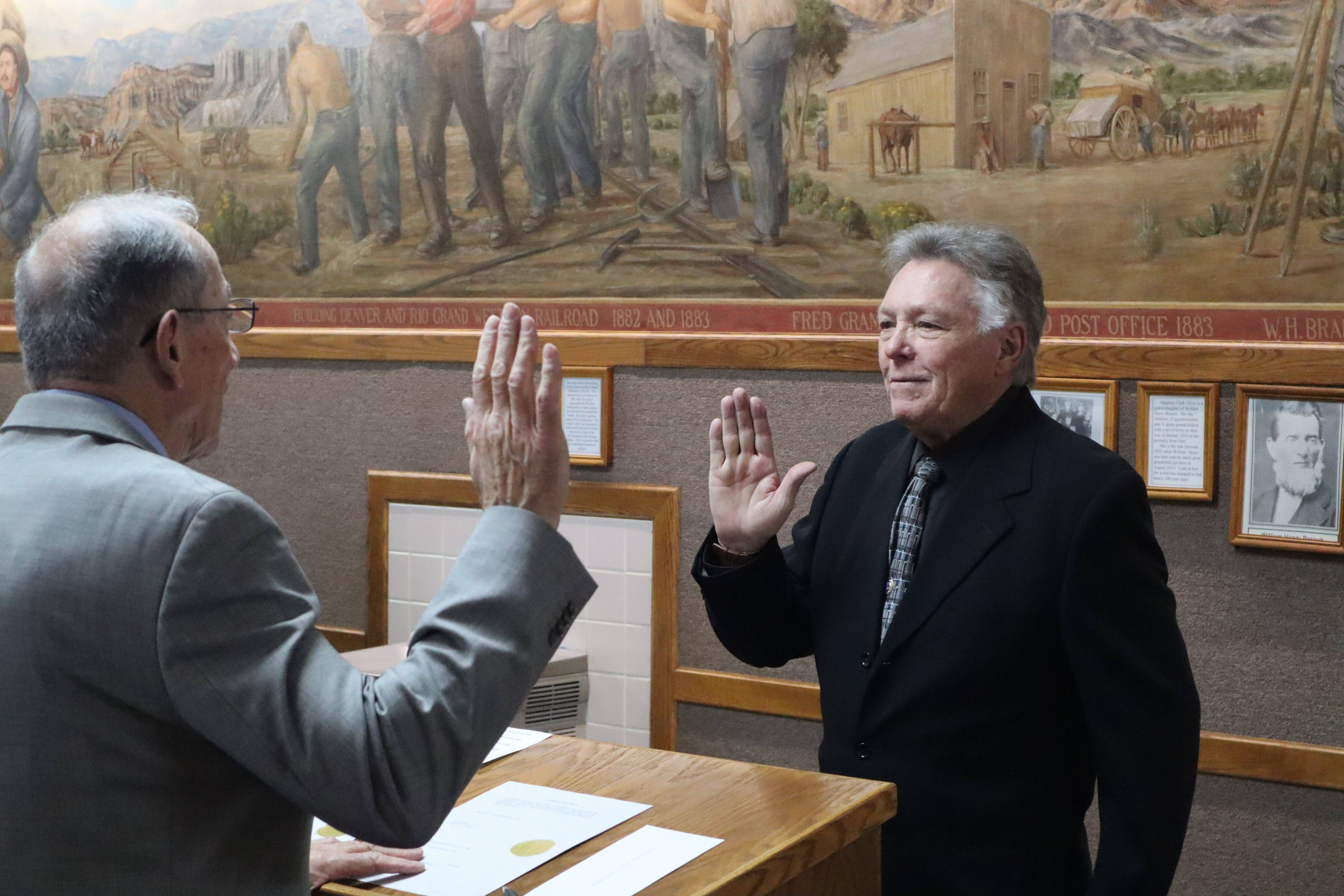 Administering the oath of office was Judge George Harmond, who had each candidate swear to support, obey and defend the Constitution of the United States, Utah and the ordinances of Price.
