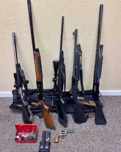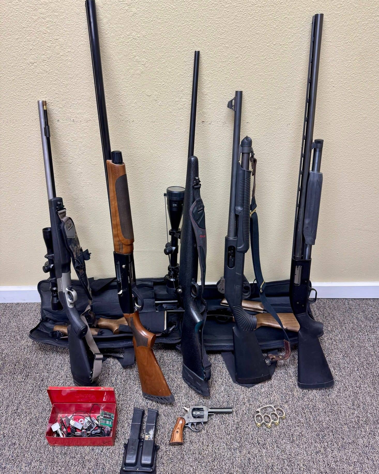 “Discovered during the search warrant was methamphetamine, heroin, prescription pills, and psilocybin mushrooms. Several firearms were also seized along with brass knuckles and inert hand grenades,” reads a release from the Price City Police Department. “Additionally, officers discovered a substance which shape, color, and composition were consistent to that of the explosive, C-4. Along with the substance officers discovered items which could be used as blasting caps and electrical switches”