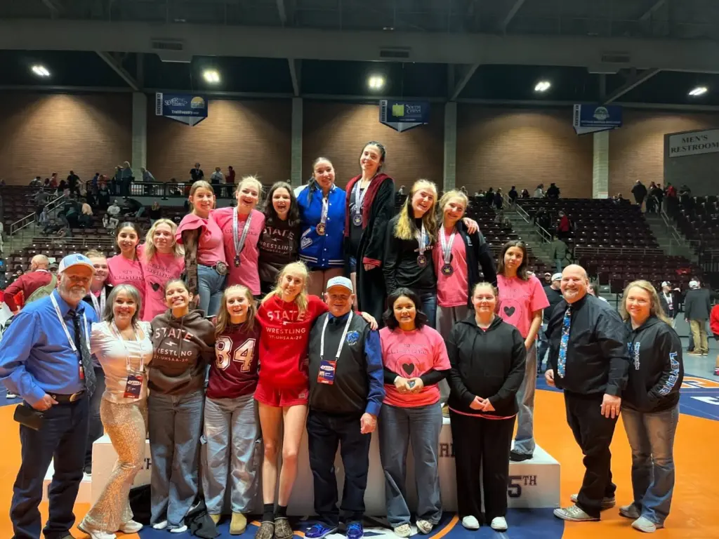 Arroyo kept up her fantastic season with a state title in the 190-pound class. Rickelle Collins at 155 pounds came in second; Alizah Trostle at 170 pounds, Jenna Pulsipher at 190 pounds, Chloe Parker at 130 pounds, and Bailee Christensen at 140 pounds each finished fourth; Farah Parker took fifth at 135 pounds.