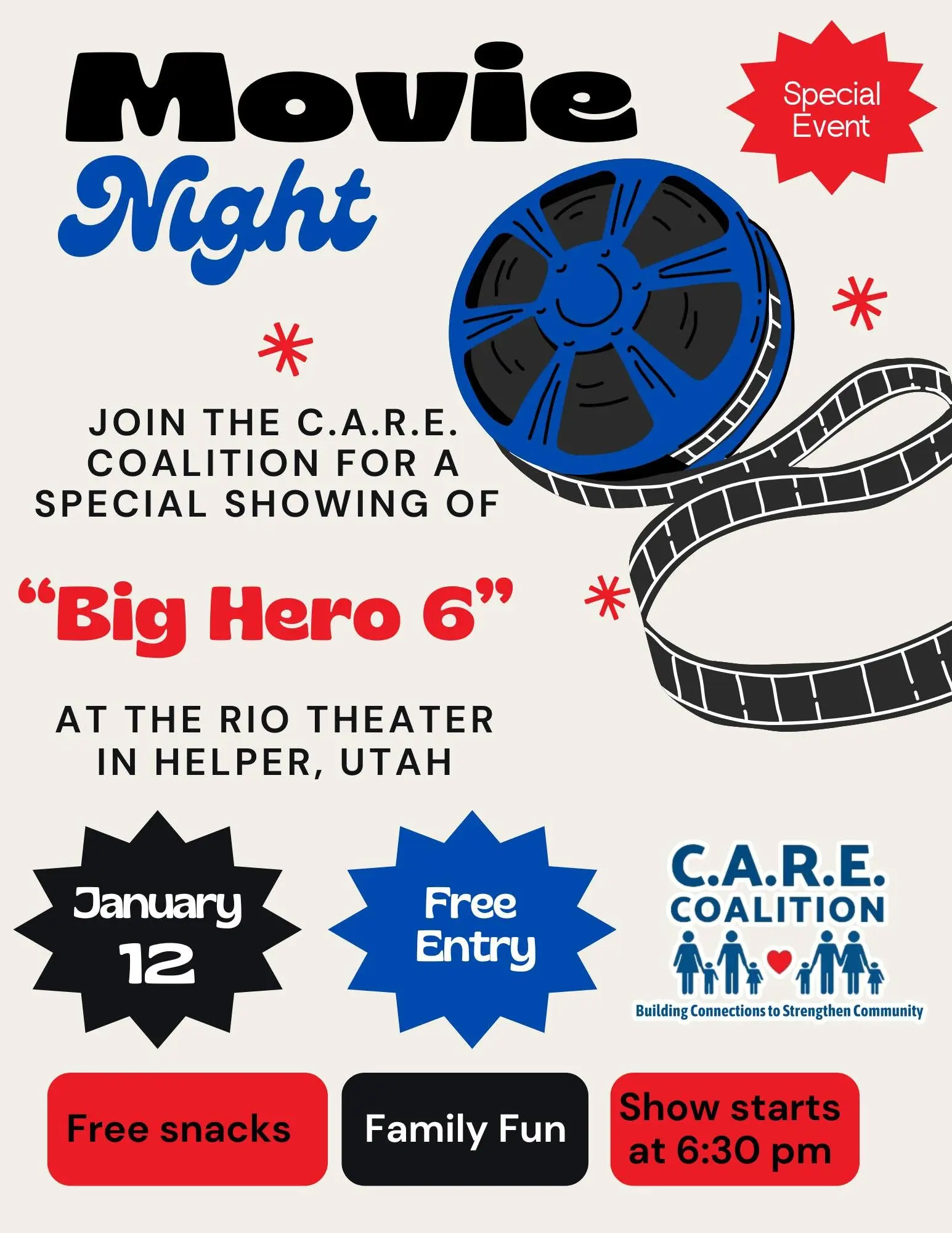 Please come join C.A.R.E. Coalition for a special showing of “Big Hero 6”