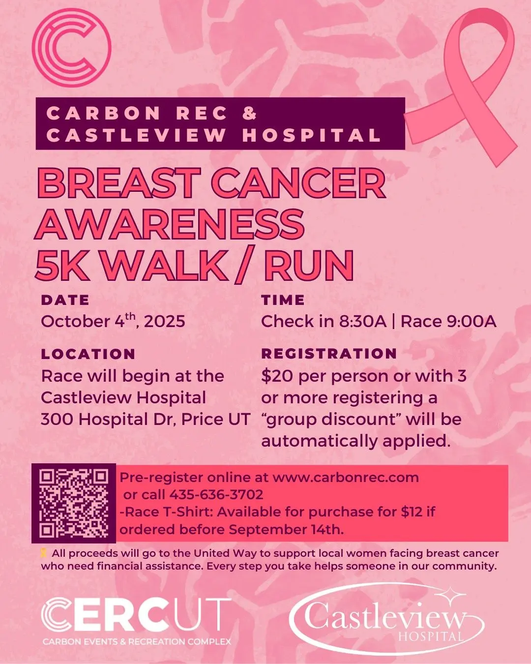 Carbon Rec & Castleview Hospital are hosting a Breast Cancer Awareness Walk/Run