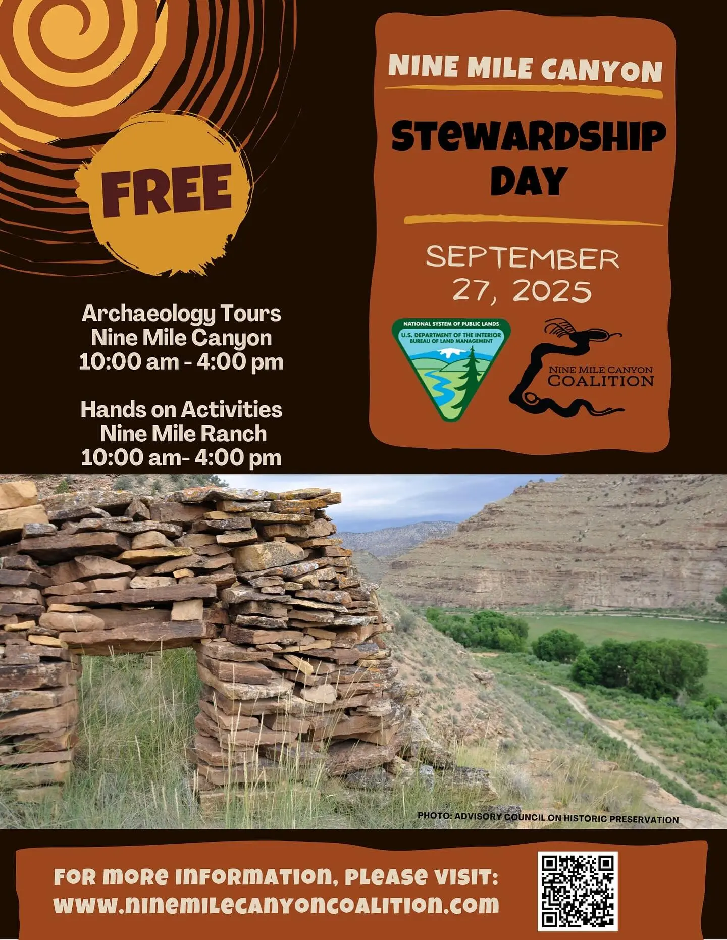 The Nine Mile Canyon Stewardship Day will take place on Saturday, September 27 from 10:00AM to 4:00PM.